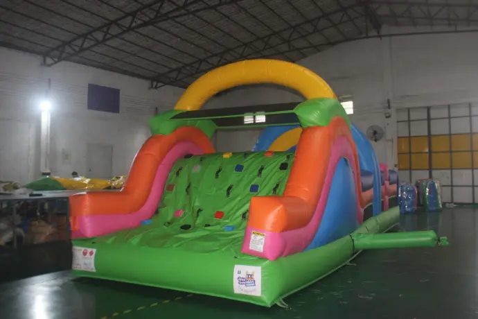 Course de 66 pieds sans eau commercial pour 300 LBS et moins avec deux glissades, tunnel, pneu, des sacs de frappe et mur d'escalade