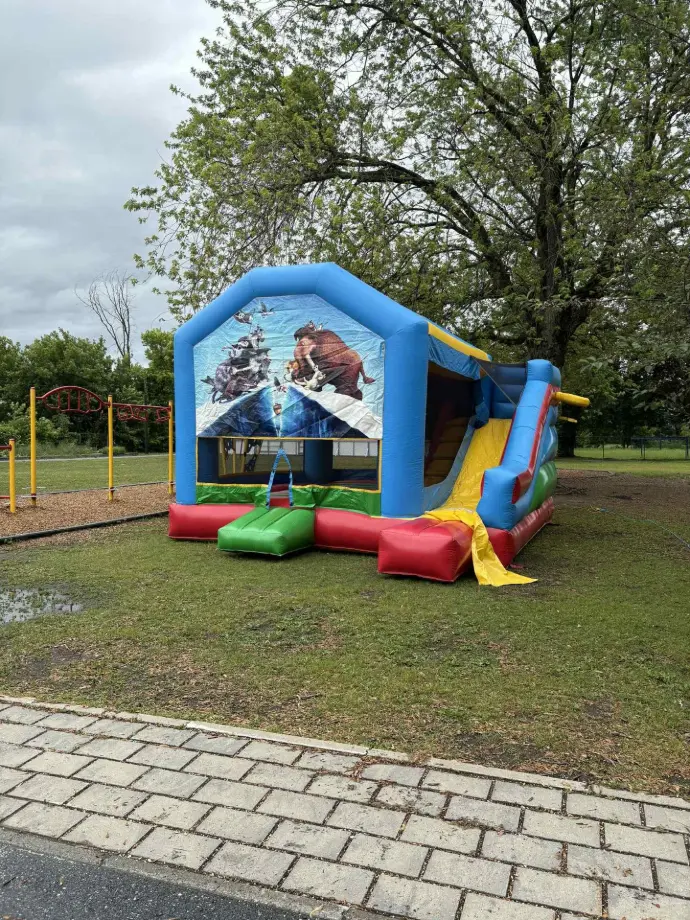 Combo sans eau commercial pour 250 LBS et moins avec glissade, grand espace de saut et un panier de basketball intérieur et extérieur.